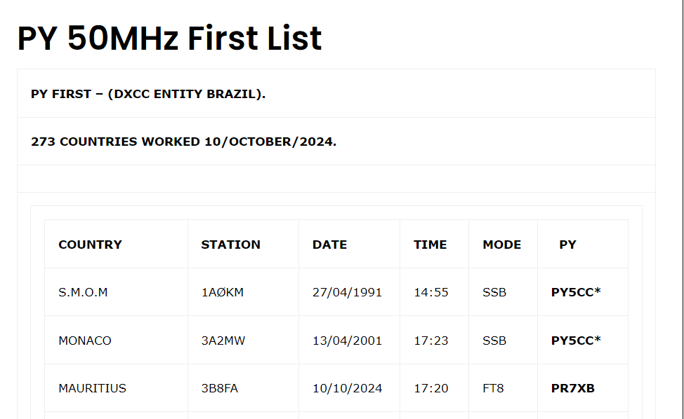 Patrice 3B8FA had a memorable QSO with Fred PR7XB who was actually in contact with him from a restaurant using a tablet ! This was recorded as the first ever 3B8 to Brazil contact on the 6M band, extract below or click on this link for full table. Indeed that is magic. Hopefully this will attract other 3B8 operators to try their luck on 6M.